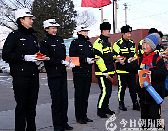 當天清早,天剛蒙蒙亮,一行人不顧積雪的阻撓早早來到校園,冒著嚴寒把飽含愛意的交通宣傳單發(fā)放到每一位同學的手中。
