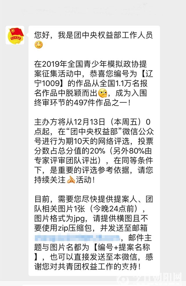 喜訊:朝陽工校學生的提案入圍“2019年全國青少年模擬政協提案”征集活動終審環(huán)節(jié)