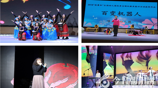 基本功展示部分包括說、唱、跳、彈、做、畫六項,本次展示中教師們完美演繹了各民族舞蹈;富有特色的唯美沙畫表演、形象配音、舞臺情景??;自主創(chuàng)編全面呈現(xiàn)大賽內(nèi)容的快板;重拾童年記憶的歌曲串燒;有著異域風(fēng)情的非洲鼓;利用生活中的廢舊材料精心設(shè)計環(huán)保時裝秀;具有創(chuàng)意的水拓畫、刮畫、手工、剪紙、泥工、水墨畫等書畫展示,設(shè)計精巧,精美絕倫,體現(xiàn)出幼兒教師較高的專業(yè)素養(yǎng)。匯報展示在全體教師演唱《苔》的歌聲中落下帷幕。
