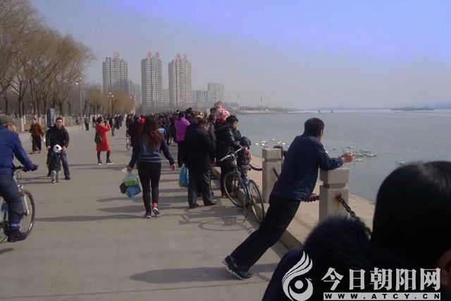 市城區(qū)河岸的甬路上欣賞白天鵝的人,更是成群結(jié)隊(duì)。匆忙走來的,騎電動(dòng)車、自行車的,把汽車停在壩上,全家老小蜂擁而至的,跑著叫喊著的小孩兒,拄著手杖的老漢……牽手而行喁喁低語的,成雙成對扶著鎖鏈指指點(diǎn)點(diǎn)的靚男靚女,抱著“大炮”調(diào)整方位的,沿著護(hù)欄參差成長長的隊(duì)列。一戴著大墨鏡的老翁對戴著紅絨線帽的老婦說:“‘一心以為有鴻鵠將至,思援弓繳而射之’,現(xiàn)在,沒人射了,天鵝真的來了”,“啊,鵠,是天鵝,那怎不見鴻雁呢?”老婦問老漢。“有時(shí)也有,鴻雁的遷徙群較小。”兩位老人一定是愛鳥人,聽他們的對話,很長知識呢。