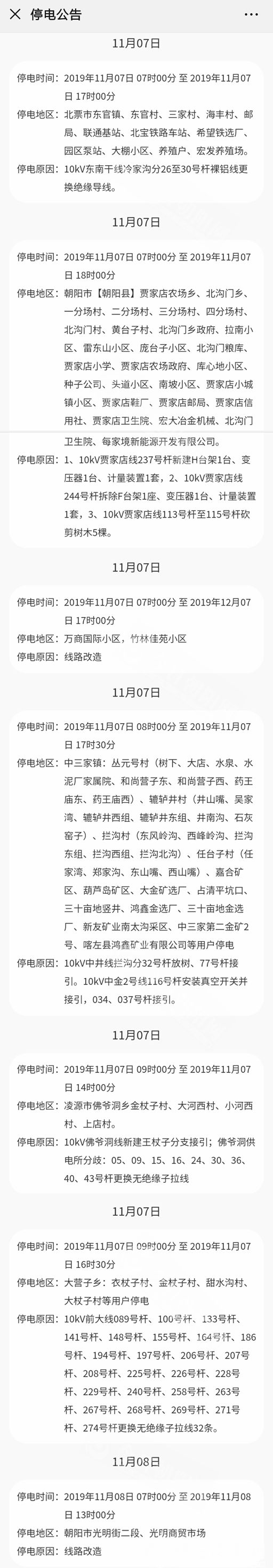 停電通知!未來(lái)兩天朝陽(yáng)這些地方將停電