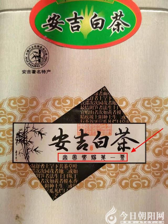 有一款安吉白茶,茶葉盒上寫(xiě)著一行小篆:“宋帝禦賜第一荼。”