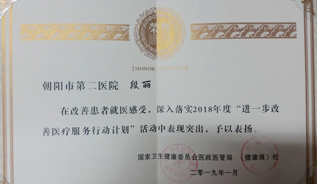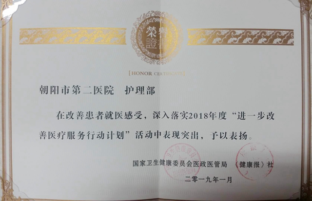 ——朝陽(yáng)市第二醫(yī)院獲得國(guó)家衛(wèi)健委表彰
