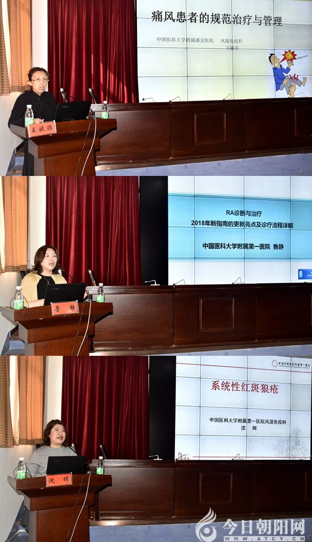 接下來(lái),進(jìn)入了學(xué)術(shù)講座環(huán)節(jié)。中國(guó)醫(yī)科大學(xué)附屬盛京醫(yī)院風(fēng)濕免疫科主任王曉非圍繞“痛風(fēng)的定義、痛風(fēng)治療面臨的問(wèn)題、中國(guó)痛風(fēng)診療指南、飲食控制原則、運(yùn)動(dòng)對(duì)痛風(fēng)的影響”等內(nèi)容,講解了《痛風(fēng)患者的規(guī)范治療與管理》;中國(guó)醫(yī)科大學(xué)附屬第一醫(yī)院風(fēng)濕免疫科副主任魯靜從“類風(fēng)濕關(guān)節(jié)炎的病理、臨床表現(xiàn)、實(shí)驗(yàn)室檢查、診療流程”等方面,對(duì)《類風(fēng)濕關(guān)節(jié)炎的診斷與治療》進(jìn)行了解讀;中國(guó)醫(yī)科大學(xué)附屬第一醫(yī)院風(fēng)濕免疫科主任醫(yī)師沈暉以《系統(tǒng)性紅斑狼瘡》為題,細(xì)致解析了紅斑狼瘡的概述、發(fā)病原因、臨床表現(xiàn)與治療。