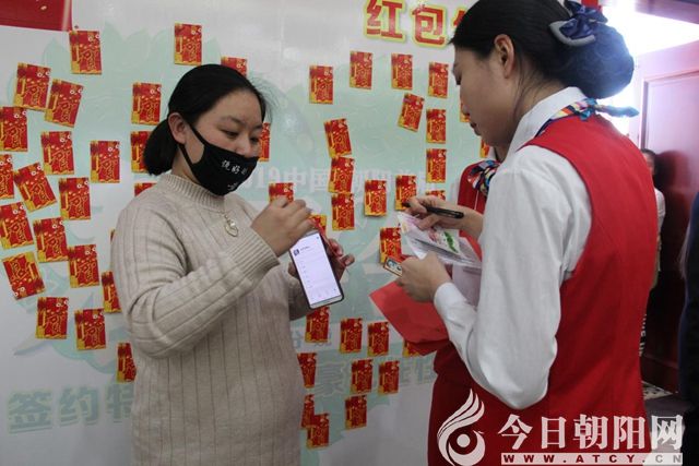 簽約的準(zhǔn)媽媽在紅包墻前快樂(lè)開(kāi)獎(jiǎng)
