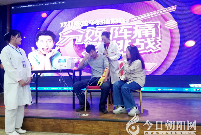 準(zhǔn)爸爸挑戰(zhàn)分娩鎮(zhèn)痛,準(zhǔn)媽媽在一旁陪伴。