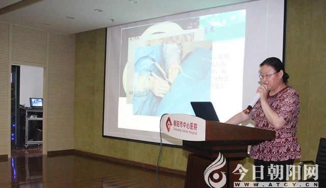 朝陽市第四醫(yī)院外科副主任劉俊婷在學(xué)術(shù)會(huì)上作經(jīng)驗(yàn)分享