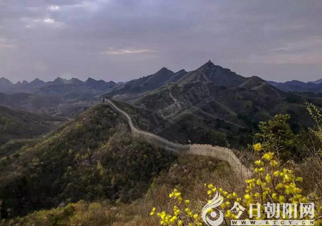 蒼茫云海間,巍峨屹古垣。山花點(diǎn)點(diǎn)亮,青蛇亦蜿蜒。