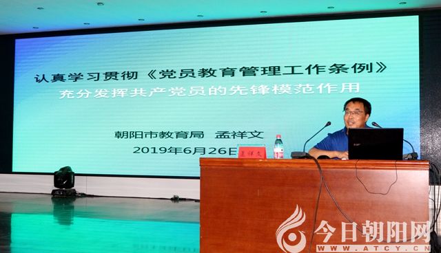 6月26日,遼寧省朝陽市教育局黨組成員、副局長孟祥文為朝陽市財經(jīng)學(xué)校全體黨員及中層干部上了一堂生動的黨課。會議由該校校長曹陽主持。