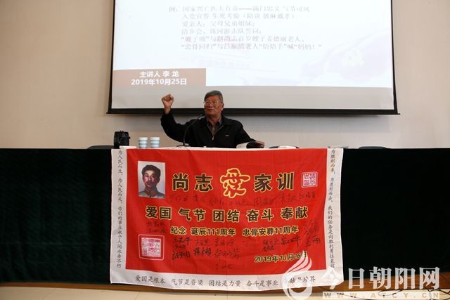 2019年10月26日,是東北抗日聯(lián)軍第三軍軍長趙尚志將軍誕辰111周年和忠骨安葬11周年紀(jì)念日。在這個特殊的日子即將到來之際,10月25日,遼寧省朝陽工程技術(shù)學(xué)校開展了以“尚志精神代代傳、革命后代話初心”為主題的“不忘初心、牢記使命”主題黨日活動。此次活動除了該校全體黨員及部分學(xué)生參加外,還特別邀請了趙尚志的四妹趙尚英的兒子李龍、李龍的夫人李樹范、李龍的妹妹李丹妮、妹夫于恒杰,抗聯(lián)英雄朱新陽的后代王維、盤錦市抗戰(zhàn)文化研究會會長侯振江以及來自哈爾濱的東北抗日聯(lián)軍精神宣傳小分隊(duì)等一行參加。