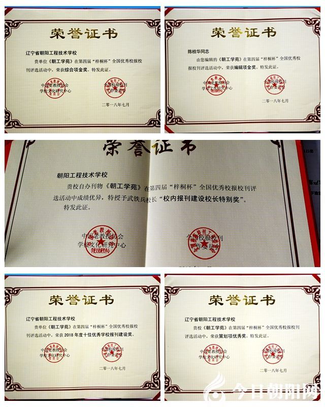 春華秋實,放飛的是一種追尋;山長水闊,執(zhí)著的是一份堅韌。2018年《朝工學(xué)苑》攀蟾折桂在第四屆“梓桐杯”全國優(yōu)秀校報??晒乖u中獲得“??C合項金獎”“??庉嬳椊皙?rdquo;“學(xué)校校刊建設(shè)校長特別獎”“學(xué)校報刊建設(shè)特別獎”“2018年度十佳優(yōu)秀學(xué)校報刊建設(shè)獎”五項大獎。她華美地綻放,讓人跌入花間,為校園之春增添一抹最靈動的風(fēng)景。