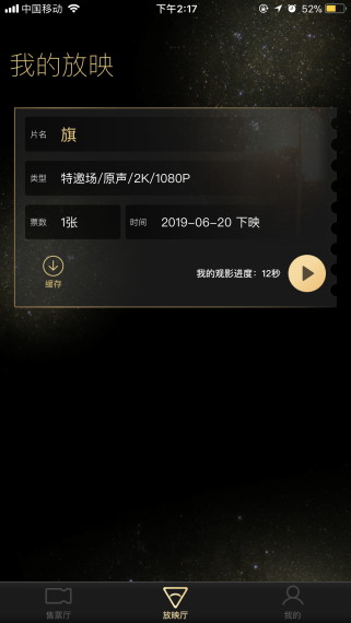 五、進(jìn)入移動(dòng)電影院APP后,選擇放映廳。