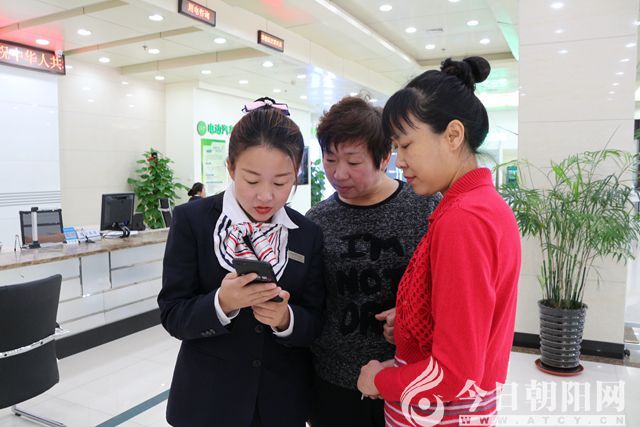 供電大廳的工作人員向市民介紹“國網(wǎng)朝陽供電服務(wù)”微信公眾號內(nèi)容