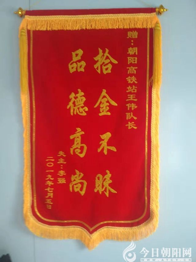2019年6月10日,王偉執(zhí)勤期間在送客區(qū)拾到錢夾一個,內(nèi)有身份證和銀行卡共計12張及現(xiàn)金755元,通過鐵路公安處聯(lián)系到失主李先生,及時將失物交還給他。2019年7月5日,李先生將一面寫有“拾金不昧,品德高尚”的錦旗專程送到高鐵站,感謝王偉及全體保安員。