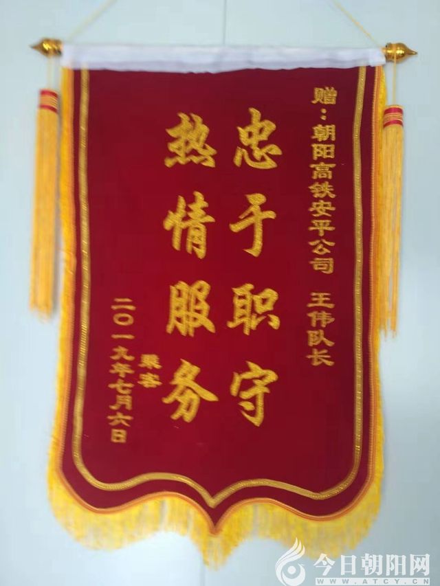 2019年7月6日,王偉在執(zhí)勤中發(fā)現(xiàn)一下車乘客步履蹣跚行動不便,隨即帶領(lǐng)員工到站內(nèi)借用殘疾車一路攙扶護送至待客區(qū)乘車處將旅客扶上車,家屬趕來時正好目睹了這感人一幕。感動之余,對王偉這一做法給予了高度評價,事后又專程到高鐵站敬獻錦旗一面,感謝安平集團保安員耐心、周到、熱情的服務(wù)。