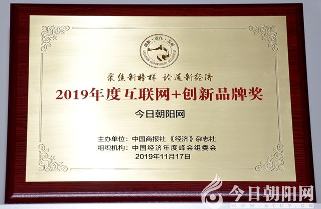 2019年11月17日,由中國商報社、《經(jīng)濟》雜志社聯(lián)合主辦的“2019中國經(jīng)濟年度峰會暨中國經(jīng)濟人物盛典”在北京舉行。今日朝陽網(wǎng)被大會組委會授予“2019年度互聯(lián)網(wǎng)+創(chuàng)新品牌獎”。這也是本網(wǎng)繼2016年5月榮獲2016中國新媒體門戶大會“中國新媒體地方門戶最具特色獎”和2018年5月榮獲世界新媒體大會“2018年度代表性網(wǎng)絡媒體獎”之后,獲得的又一個重要獎項。