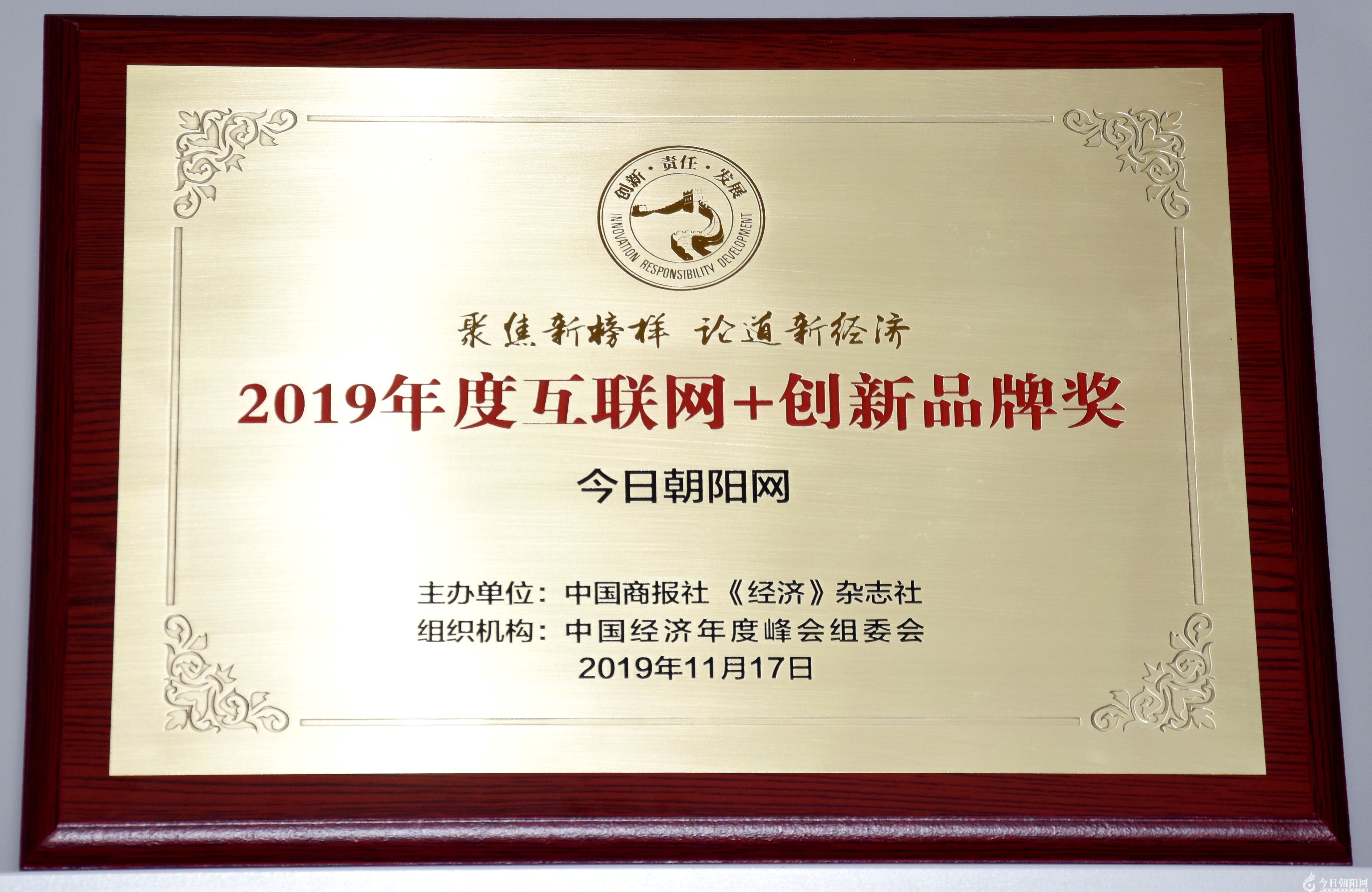 喜報:中國經(jīng)濟年度峰會授予今日朝陽網(wǎng)2019年度互聯(lián)網(wǎng)+創(chuàng)新品牌獎