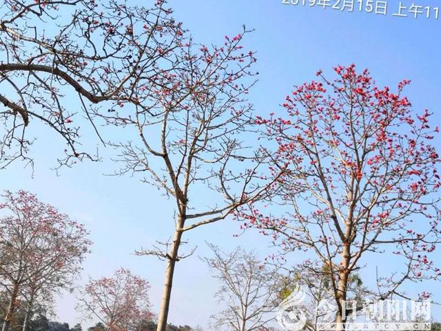 摘要:木棉樹是我國南方古老的樹種,樹形高大,每年2、3月開花,無一片葉子的枝干上開滿碩大如杯的血紅色花朵,好像一束束跳躍的火焰在枝頭燃燒,因此被視為英雄花。