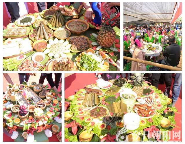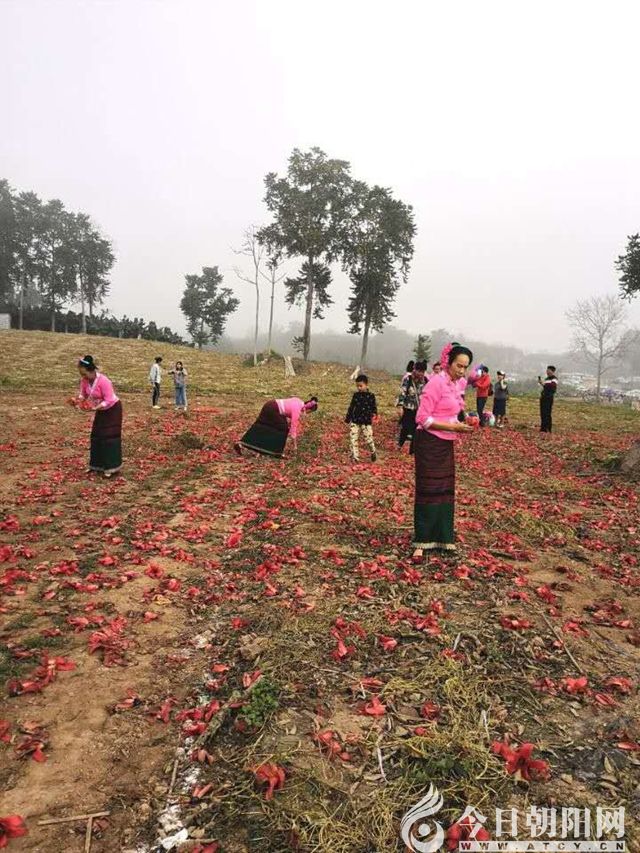 木棉花邊開邊落,花朵不褪色不枯萎,木棉樹主干周圍如地毯般火紅一片。每當(dāng)這個時候,傣家姑娘來到木棉樹下,拾起美麗漂亮的木棉花簪于發(fā)間,在木棉樹下載歌載舞。撿拾剛剛落下的木棉花,連成一串串,掛于竹樓的欄桿屋檐。還要用木棉花烹制湯羹,捧給有濕寒病痛的長輩。長輩們把女孩撿拾回來的木棉花穿插擺放在竹制餐桌的傣味菜肴之間,讓子女們食欲大開,品著竹筒腌制的瀾滄江小魚小蝦,吃著五顏六色的糯米飯。長輩們斟滿自家釀制的苞谷酒,全家人將竹筒酒杯碰在一起,互相祝福吉祥如意。
