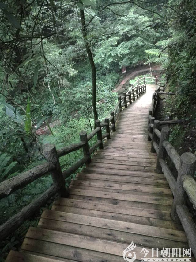 游罷古鎮(zhèn),下午接著去了佛光崖風(fēng)景區(qū)。佛光崖風(fēng)景區(qū)最大的特色就是登山小徑于密林中穿行,空氣清新。這在我們后來行程中的白馬溪、桫欏溝和赤水大瀑布等旅游景點(diǎn),幾乎都是這種特色。這幾處景點(diǎn),都是來去匆匆,開車半日跑一趟地方。留下較深印象的,是高數(shù)十米、寬上百米的赤水大瀑布,據(jù)說只略小于貴州省內(nèi)另一著名的黃果樹瀑布。從山頂下到溝底觀瀑,幾乎直上直下的石梯讓人腳下發(fā)軟,但既然千里迢迢來旅游,誰都不想坐觀光電梯,沿山路直下攀上的人居多。行至溝底,氣勢(shì)磅礴的大瀑布掀起的雨霧撲面而來,興致勃勃的游人大呼小叫,感受著清新的涼爽,迎著雨霧在大瀑布下擺姿勢(shì)留影。