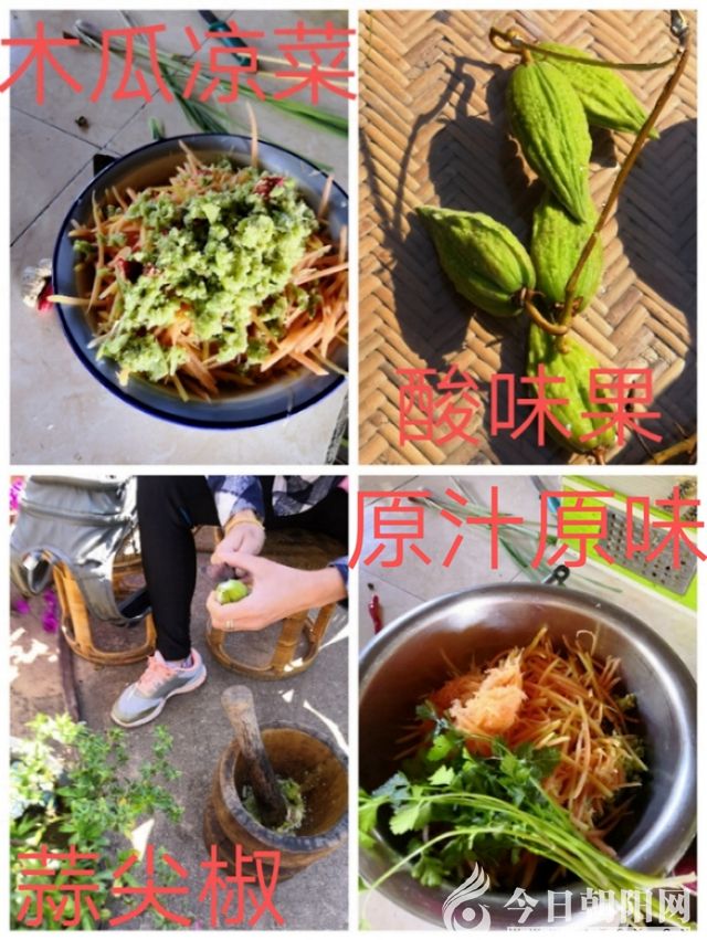 穿過南養(yǎng)河邊的大片竹林,過了三四座木橋,來到一座獨立的竹樓前,一位外地來拍短片的女士說,這里就是曾經(jīng)拍攝《讓我聽懂你的語言》電視劇的地方。騎行隊群主告訴我們,今天午餐地點就定在這里,大家就地休息。哈尼族姑娘、騎友小趙,就地取材用園中的木瓜、香菜、野山椒、大蒜和一種酸酸的野果為大家制作了一道美食,讓大家品嘗,味道酸辣爽口,讓人回味無窮。