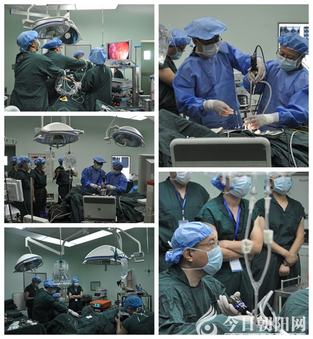 一號(hào)樓15樓手術(shù)室內(nèi),專(zhuān)家手術(shù)示范教學(xué)同步進(jìn)行。中國(guó)醫(yī)科大學(xué)附屬第一醫(yī)院泌尿外科主任醫(yī)師李振華示范了腎上腺切除術(shù)、泌尿外科副主任劉賢奎示范了兩例經(jīng)皮腎鏡、泌尿外科腎上腺病區(qū)副主任劉濤示范了腎囊腫去頂減壓術(shù);大連醫(yī)科大學(xué)附屬第二醫(yī)院副院長(zhǎng)、泌尿外科主任劉志宇示范了腎上腺切除術(shù)、泌尿外科主任李先承示范了兩例經(jīng)皮腎鏡;大連醫(yī)科大學(xué)附屬第一醫(yī)院泌尿外科主任車(chē)翔宇示范了前列腺電切術(shù);楊澤林示范了前列腺解剖性剜除術(shù)。