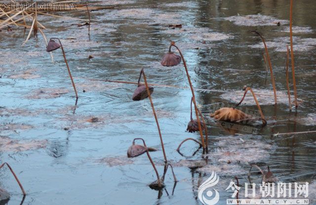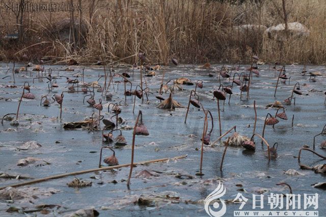 枯荷給這個寒冷的冬天,增添了一份美好??粗鴿M池的枯荷,錯落有致地立在結(jié)滿薄冰的河面上,儼然是一幅天然的水墨畫。一個個蓮蓬低垂著腦袋,已然是一副睡著的樣子,不知什么時候頑皮的蓮子早已脫離了她的懷抱,隱匿到了河底,吸收著日月精華,待明年春暖花開再一次破土而出。新的輪回又開始啦!