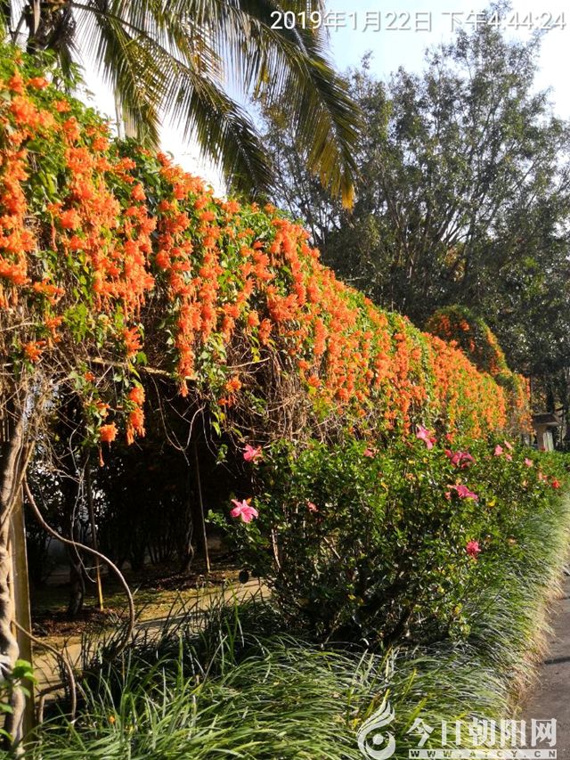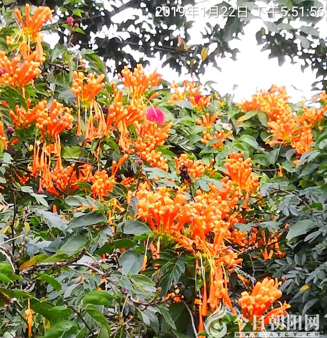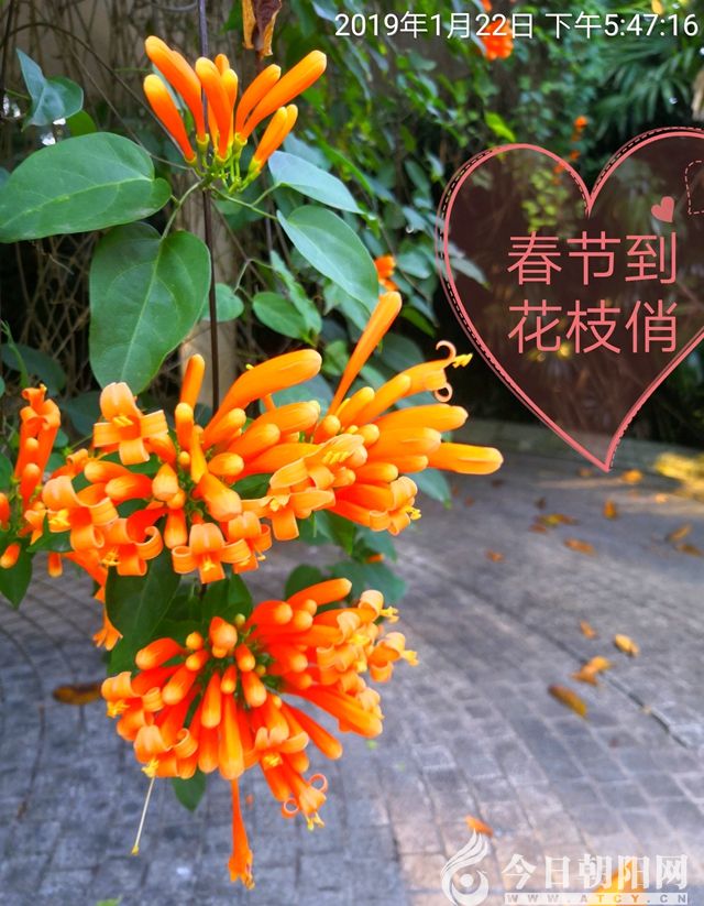 炮仗花也叫火焰籐,花語(yǔ)是“好日子紅紅火火”。炮仗花還是“潤(rùn)肺止咳,清熱利咽”的一味中藥,每年春節(jié)期間,人們不僅到熱帶花卉園觀賞炮仗花,還有一些本地人,拿著小竹筐來(lái)?yè)炻涞氐呐谡袒ǘ洹?/span>