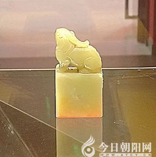 遼博展出的故宮養(yǎng)心殿文物里有幾方清帝御用之印,一方是雍正的“為君難”青田石異獸鈕印,另一方是乾隆的《養(yǎng)心殿銘》青金石蟠螭鈕印。
