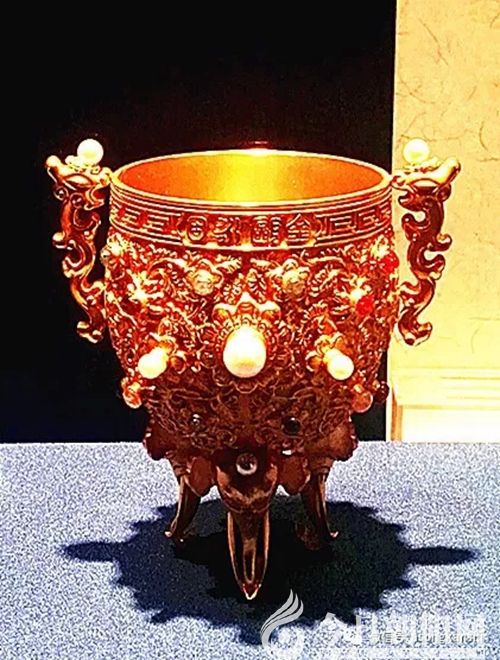 在遼博展出的北京故宮養(yǎng)心殿文物中,鑲金嵌銀的金甌(ōu)永固杯顯得分外華貴,十分搶眼,這涉及到清代皇室的一項重要習俗:明窗開筆?,F(xiàn)代人過春節(jié)時,會用放鞭炮、互相拜年等方式來慶祝,而“明窗開筆”則是雍正皇帝開創(chuàng)的賀新春儀式,此后成為定制。