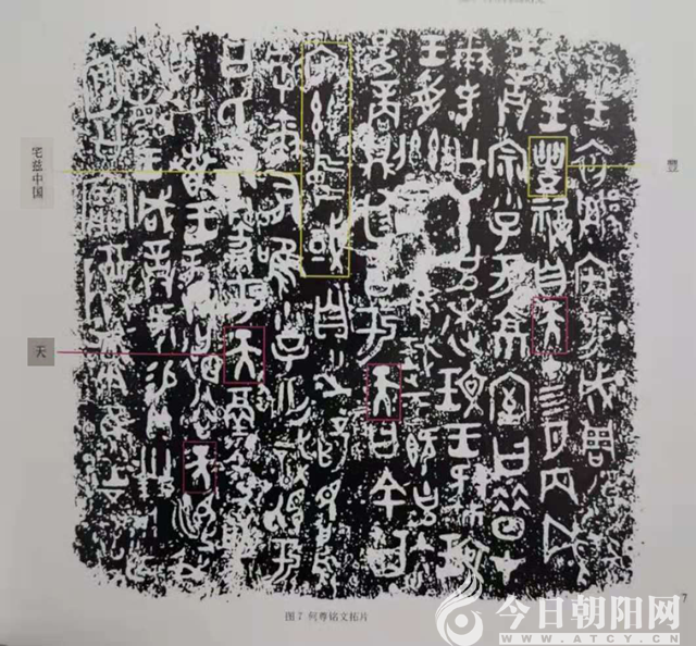 2019年,中華書局出版阿成的《曇曜五窟——文明的造型探源》一書,他在解讀何尊銘文時,提出了頗有新意的獨到見解。他注意到銘文中有四個重復的人形字,這是一般解做“天”的金文字。