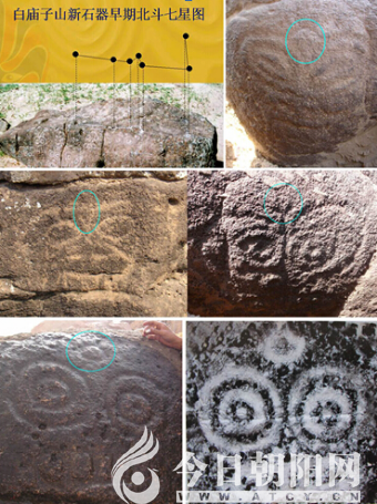 這種是第三只眼的刻畫(huà)形象,說(shuō)明了他們是紅山文化有智慧的圣巫。尤其巖畫(huà)右上角人面所在巨石上有上萬(wàn)年前的北斗七星,說(shuō)明這些圣巫已經(jīng)在觀測(cè)斗極。