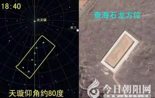 公元前6000年冬至日戌時(shí)北斗方位與建在東北——西南方向山體巖脈上的查海石堆龍方位吻合。而且龍頭與龍身分別與斗魁和斗杓吻合。