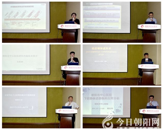 學(xué)術(shù)講座環(huán)節(jié)由“專家講座、專題講座和同行交流”三部分組成,分別由吳鑫華、李文達(dá)、楊東煒、趙國(guó)文、張瑛、李國(guó)明主持。第一階段中,中國(guó)醫(yī)科大學(xué)附屬盛京醫(yī)院第一介入病房主任劉兆玉、中國(guó)醫(yī)科大學(xué)附屬第一醫(yī)院介入科主任醫(yī)師張曦彤、中國(guó)醫(yī)科大學(xué)附屬盛京醫(yī)院介入科主治醫(yī)師遲源結(jié)合臨床實(shí)際,詳細(xì)講解了《血管疾病介入治療》《TIPS臨床應(yīng)用》《介入在急診中的應(yīng)用》;第二階段中,市中心醫(yī)院腫瘤一科主任崔秀潔、放射線科教學(xué)主任張成軍、消化科副主任醫(yī)師張盾分別帶來(lái)了《肝癌內(nèi)科治療進(jìn)展》《膽管癌的影像診斷》《朝陽(yáng)市中心醫(yī)院消化內(nèi)鏡技術(shù)簡(jiǎn)介》三個(gè)專題的細(xì)致解析;第三階段中,市中心醫(yī)院骨外三科主任胡剛、心胸外科主任白舒、外科教研室主任楊東煒,朝陽(yáng)市長(zhǎng)江醫(yī)院介入科主任李文達(dá)、朝陽(yáng)縣中心醫(yī)院介入科主任楊松、朝陽(yáng)市第四醫(yī)院外科副主任劉俊婷、朝陽(yáng)市長(zhǎng)江醫(yī)院介入科副主任張宏燕,依次分享了《經(jīng)皮椎體成形術(shù)的臨床應(yīng)用》《放射性粒子及射頻治療晚期肺癌病例分享》《下腔靜脈濾器的臨床應(yīng)用》《腰間盤突出癥的介入治療》《肝動(dòng)脈化療栓塞術(shù)聯(lián)合微波消融術(shù)治療原發(fā)性肝癌》《朝陽(yáng)市第四醫(yī)院開(kāi)展經(jīng)皮介入診療初期工作體會(huì)》《經(jīng)皮經(jīng)肝胃冠狀靜脈栓塞術(shù)治療上消化道出血》。