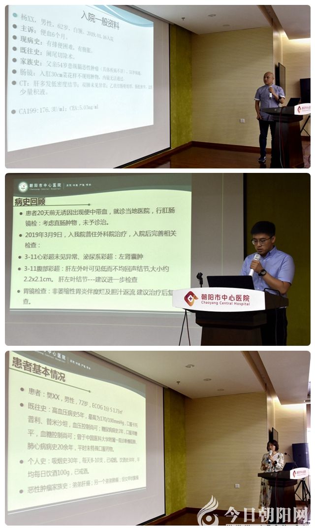 病例討論環(huán)節(jié)由遼寧省腫瘤醫(yī)院結(jié)直腸外科副主任陳玉澤、凌源市中心醫(yī)院普外科主任羅有林、北票市中心醫(yī)院腫瘤血液科主任劉偉東,朝陽市中心醫(yī)院腫瘤內(nèi)一科主任崔秀潔、普外二科主任吳鑫華、普外三科主任袁杰慶分別主持。遼寧省腫瘤醫(yī)院結(jié)直腸外科副主任醫(yī)師張昊、朝陽市中心醫(yī)院普外一科醫(yī)生張帥國、朝陽市中心醫(yī)院腫瘤內(nèi)一科副主任醫(yī)師路琳依次對(duì)三個(gè)臨床病例作了分享。與會(huì)專家進(jìn)行了熱烈討論,給出了合理化的建議。