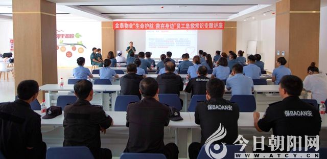 7月26日午后,遼寧省朝陽市中心醫(yī)院延伸護理志愿者團隊成員再次走進朝陽金泰物業(yè)講堂,為該公司物業(yè)部、客服部、秩維部的50多名員工進行了一次以“生命護航 救在身邊”為主題的急救常識專題講座。