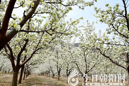 遠(yuǎn)眺,梨花一叢叢,一簇簇,猶如白色海洋中的浪花微微涌動(dòng)。會(huì)讓人情不自禁地感受到微微細(xì)雨悄悄潤(rùn),驛路梨花處處開的世外桃源境界。