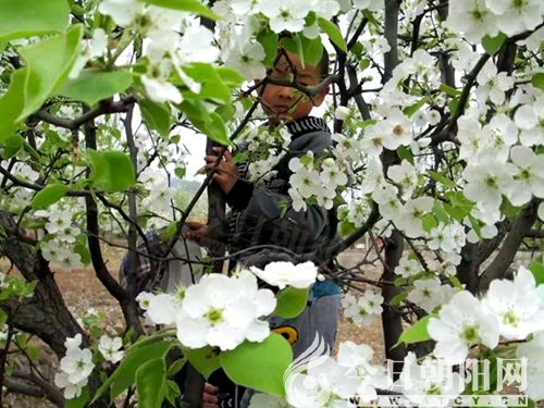沉醉在花海里的我們,一會(huì)兒,翹起腳,聞一聞梨花的味道;一會(huì)兒,蹲下身子閉著雙眼,感受那氤氳在空中香甜的氣息;一會(huì)兒,撫摸樹枝,輕輕吮吸那花瓣。身心融化在梨花微雨里。我和六歲的兒子樂樂迫不及待地拿起相機(jī)記錄下了我們?cè)诶婊ㄩg徜徉、嬉戲的情景,定格那一刻最美的記憶。