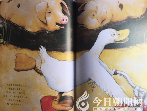 《鴨子騎車記》講述的是農(nóng)場(chǎng)里的一只鴨子,有一天冒出一個(gè)瘋狂的主意,它打賭它會(huì)騎車,于是,它一搖一擺地走到男孩停著的自行車旁,爬上去,騎了起來。開始它騎得很慢,而且左搖右晃,但是很好玩!一路上,鴨子一邊騎車,一邊與路過的小動(dòng)物們打招呼,動(dòng)物們都用自己獨(dú)特的叫聲來回應(yīng)它的問好,同時(shí)內(nèi)心里也發(fā)出了不同的聲音……