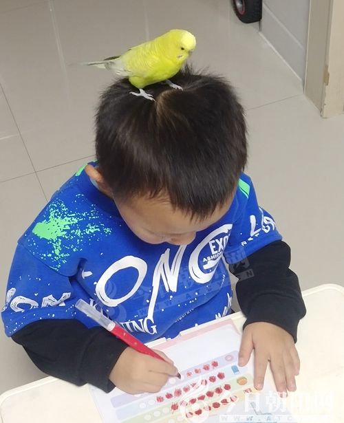 活潑的小鸚鵡成了兒子的好伙伴。兒子學(xué)習(xí)時,他要站在兒子頭上,煞有介事地和兒子一起讀書,認(rèn)真的樣子仿佛能看懂一般。兒子吃零食時,也要先和小鸚鵡分享一下。小鸚鵡的到來,打開了四歲孩子了解生命的窗口,他總是關(guān)心小鸚鵡的盤子里是不是還有小米,水碗里的水是不是干凈,他會細(xì)心地?fù)炱鹦←W鵡抖落的羽毛,偶爾和小鸚鵡聊聊天,一句一句地猜測鸚鵡在說什么……孩子與鸚鵡和諧相處的畫面總是那么暖心。