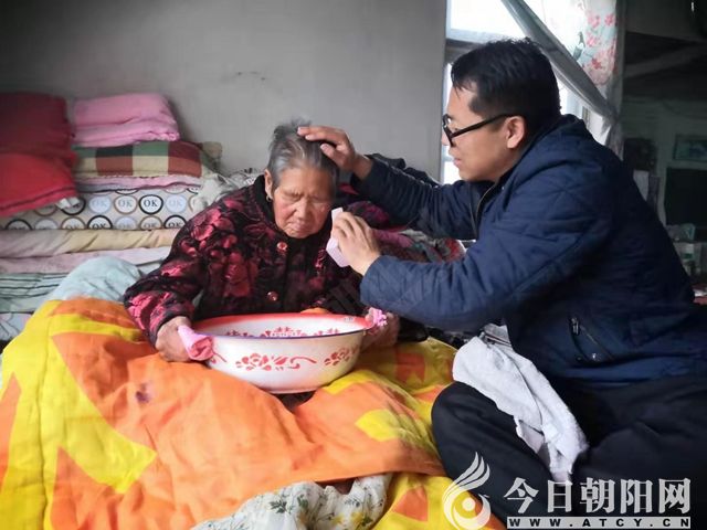 這個時間,妻子女兒做飯,我洗完尿墊晾好后,進屋給老母親洗臉。老人家自己坐不穩(wěn),我就讓她倚著被垛,兩邊各擠著一個枕頭,這樣就牢靠多了。