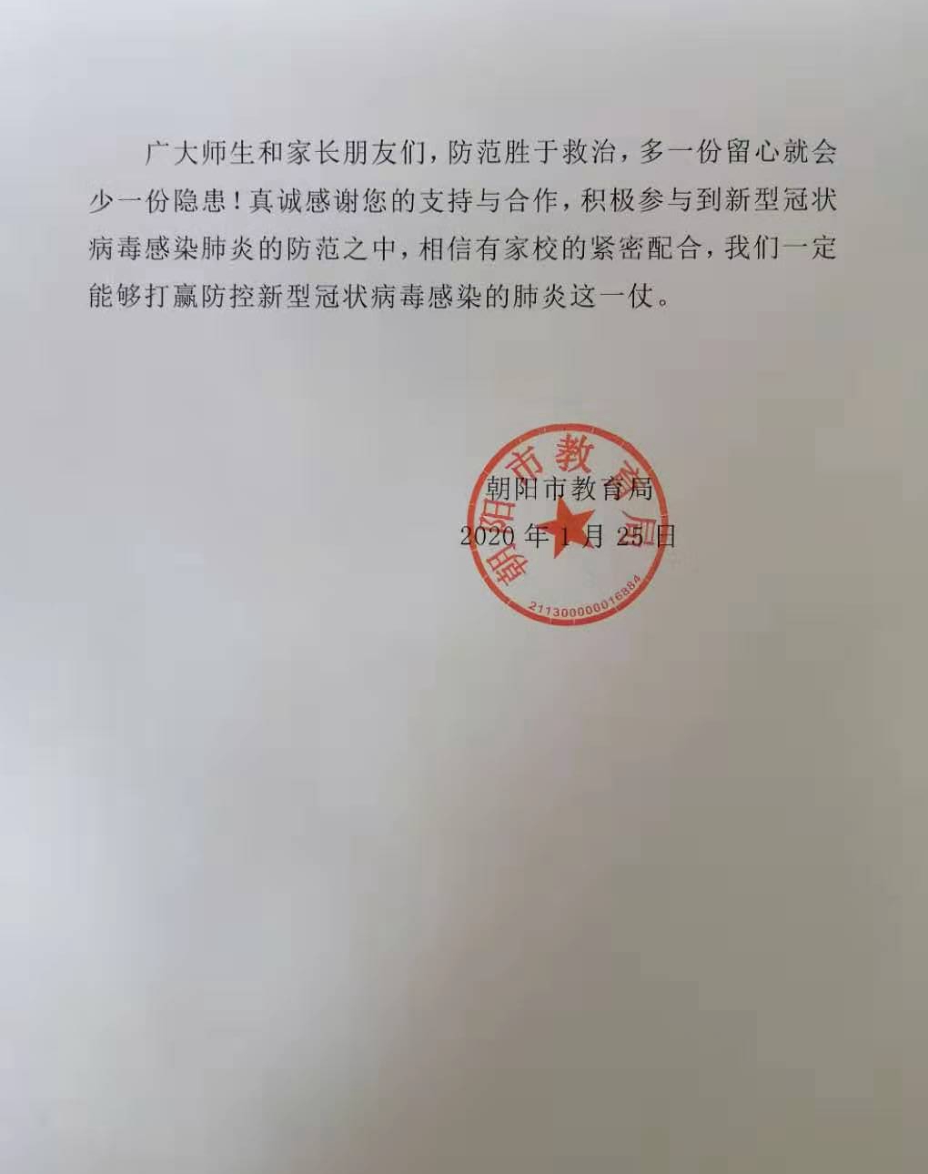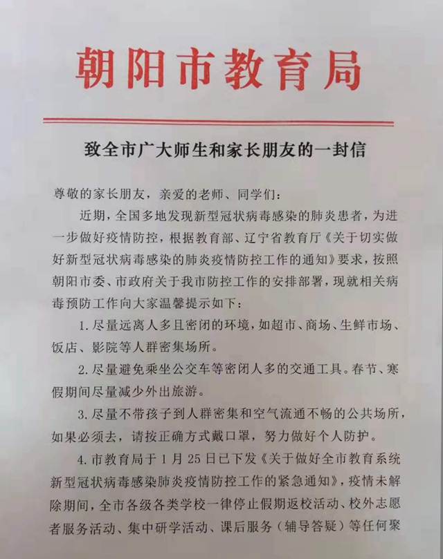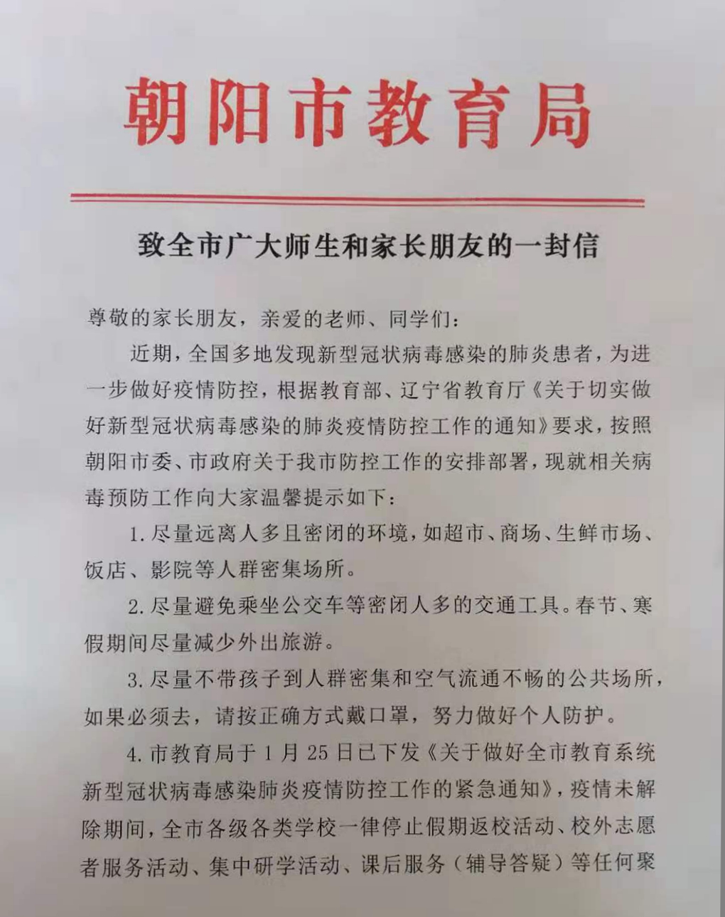 朝陽市教育局致全市廣大師生和家長朋友的一封信