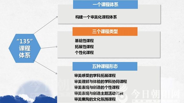 我們以“美視點(diǎn)”為切入點(diǎn),加強(qiáng)不同類型課程之間的連通性,統(tǒng)整學(xué)校課程,形成我校“135”課程體系。(如圖)