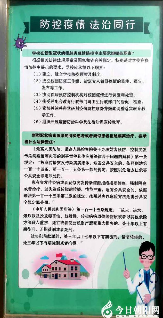 堅持依法防控疫情,在法治軌道上統(tǒng)籌推進各項防控工作,保障疫情防控工作順利開展,這既是命令,也是責任。朝陽市財經(jīng)學校認真貫徹落實《遼寧省教育廳辦公室關于組織開展“抗擊疫情 法治同行”專項法治宣傳活動通知》精神要求,開展了“線上線下同宣傳”“干部師生同學習”“多措并舉同步走”的專項宣傳教育活動。