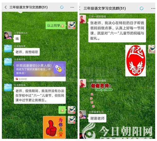 課上孩子們歡歌笑話,節(jié)目層出不窮。課下他們認真完成作文。大家互說互改,互寫互評,在歡樂中互相提高,共同進步。同學們對我說,“疫情期間,雖然沒有辦法在學校過六一兒童節(jié),但今天在網(wǎng)課中過節(jié)更讓我難忘”“我要在這個特別的日子幫爸爸媽媽做點事,認真上好每一節(jié)網(wǎng)課,這就是我對六一兒童節(jié)的祝福與獻禮”??吹酵瑢W們的成長,我感到無比欣慰。