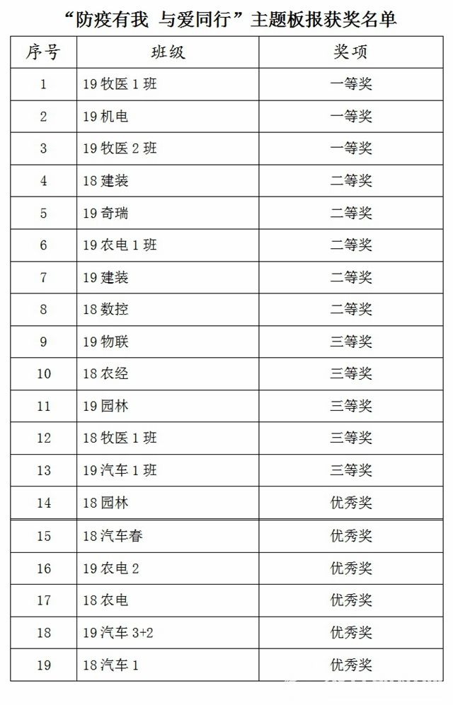 7月2日下午,遼寧省朝陽工程技術(shù)學(xué)校團(tuán)委、學(xué)生科組織開展了“防疫有我 與愛同行”為主題的板報(bào)評選活動(dòng)。旨在進(jìn)一步加強(qiáng)校園疫情防控知識宣傳,共同營造文明健康、積極向上的班級文化氛圍。
