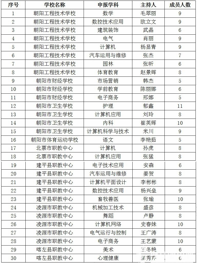 朝陽(yáng)市中職學(xué)校首批教學(xué)名師工作室名單