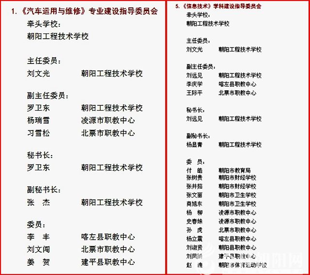 朝陽(yáng)市中職學(xué)校首批專業(yè)(學(xué)科)建設(shè)指導(dǎo)委員會(huì)部分名單