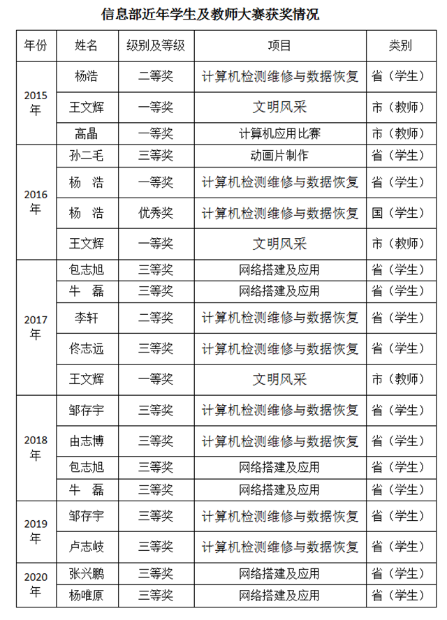 學(xué)校信息技術(shù)類專業(yè)師資力量雄厚。通過(guò)專業(yè)教師全員培訓(xùn),培養(yǎng)專業(yè)帶頭人、骨干教師,選派教師下企業(yè)頂崗實(shí)踐,引進(jìn)新教師、聘請(qǐng)企業(yè)一線技術(shù)人員、管理專家擔(dān)任兼職教師等措施,專業(yè)部組建了由2名專業(yè)帶頭人、4名骨干教師、19名“雙師型”教師及12名行業(yè)專家的教師團(tuán)隊(duì),大大滿足了培養(yǎng)和提高學(xué)生專業(yè)素質(zhì)的需求,為培養(yǎng)優(yōu)秀的信息類技術(shù)人才打下了堅(jiān)實(shí)基礎(chǔ)。