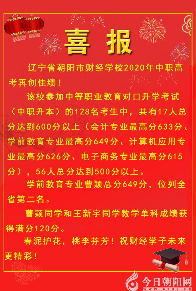 喜報(bào)!朝陽市財(cái)經(jīng)學(xué)校2020年中職升本再傳佳績